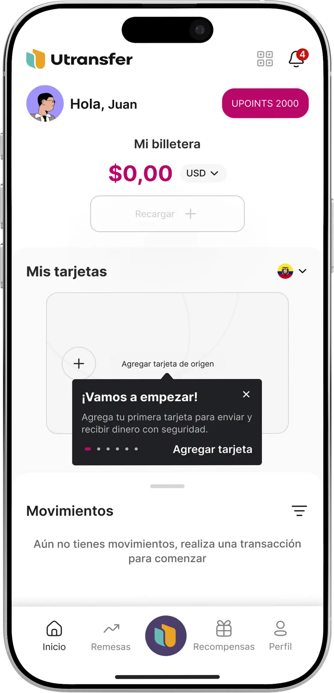 Gana recompensas exclusivas por cada movimiento. Con Utransfer, tu saldo rinde más y te ofrece más libertad.
